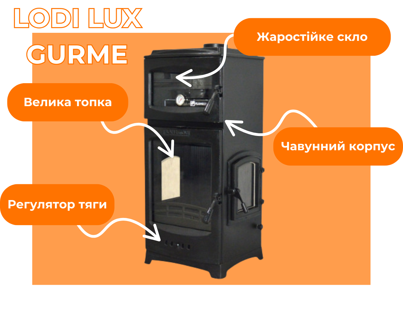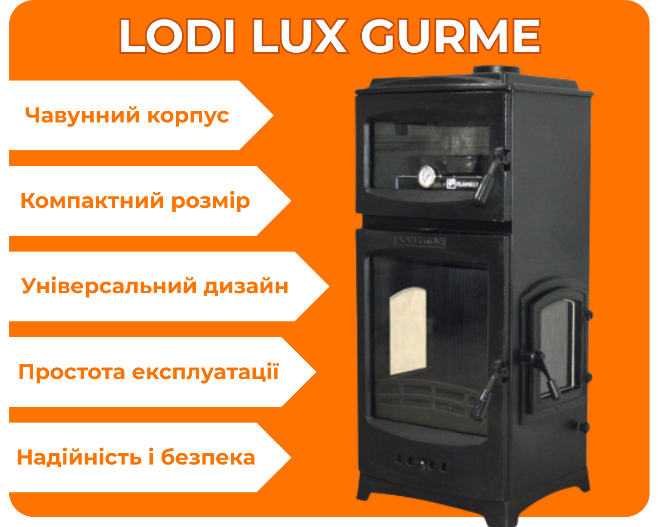 Чугунная печь Flame Stove Lodi Lux Gurme с духовкой и боковой дверкой