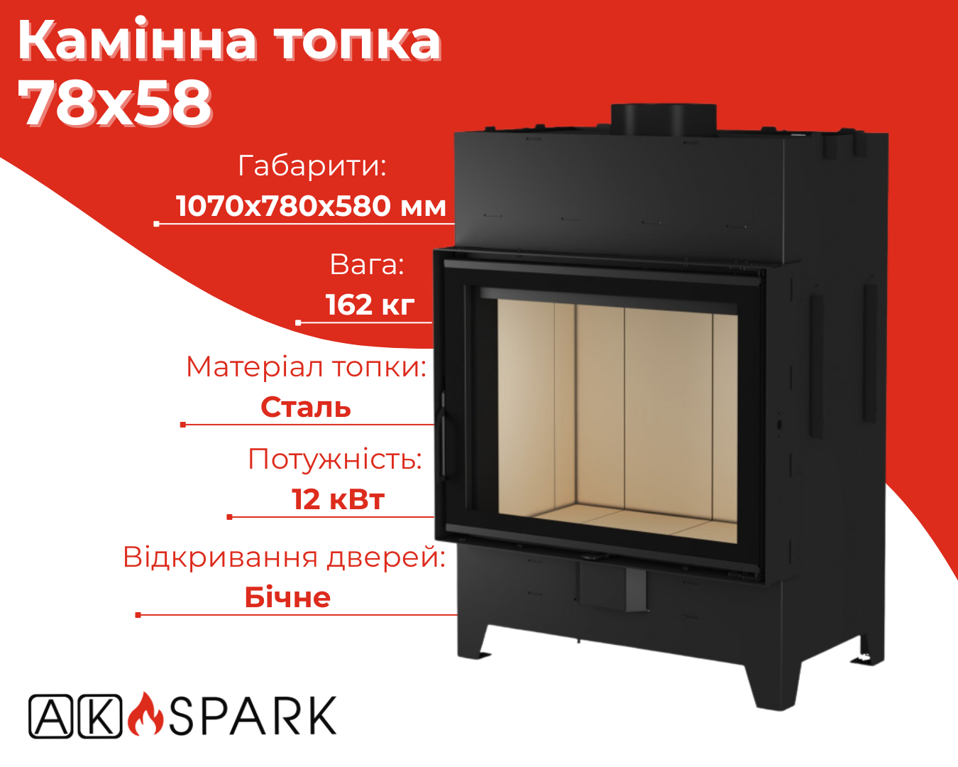 Каминная топка AK SPARK 78x58 12 кВт