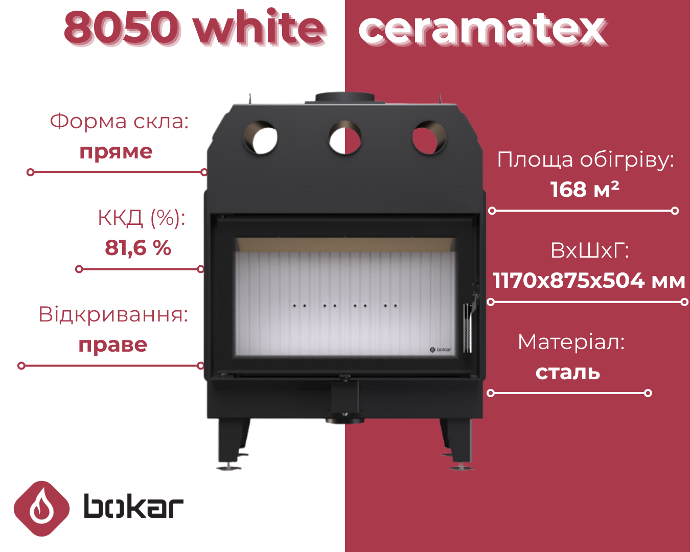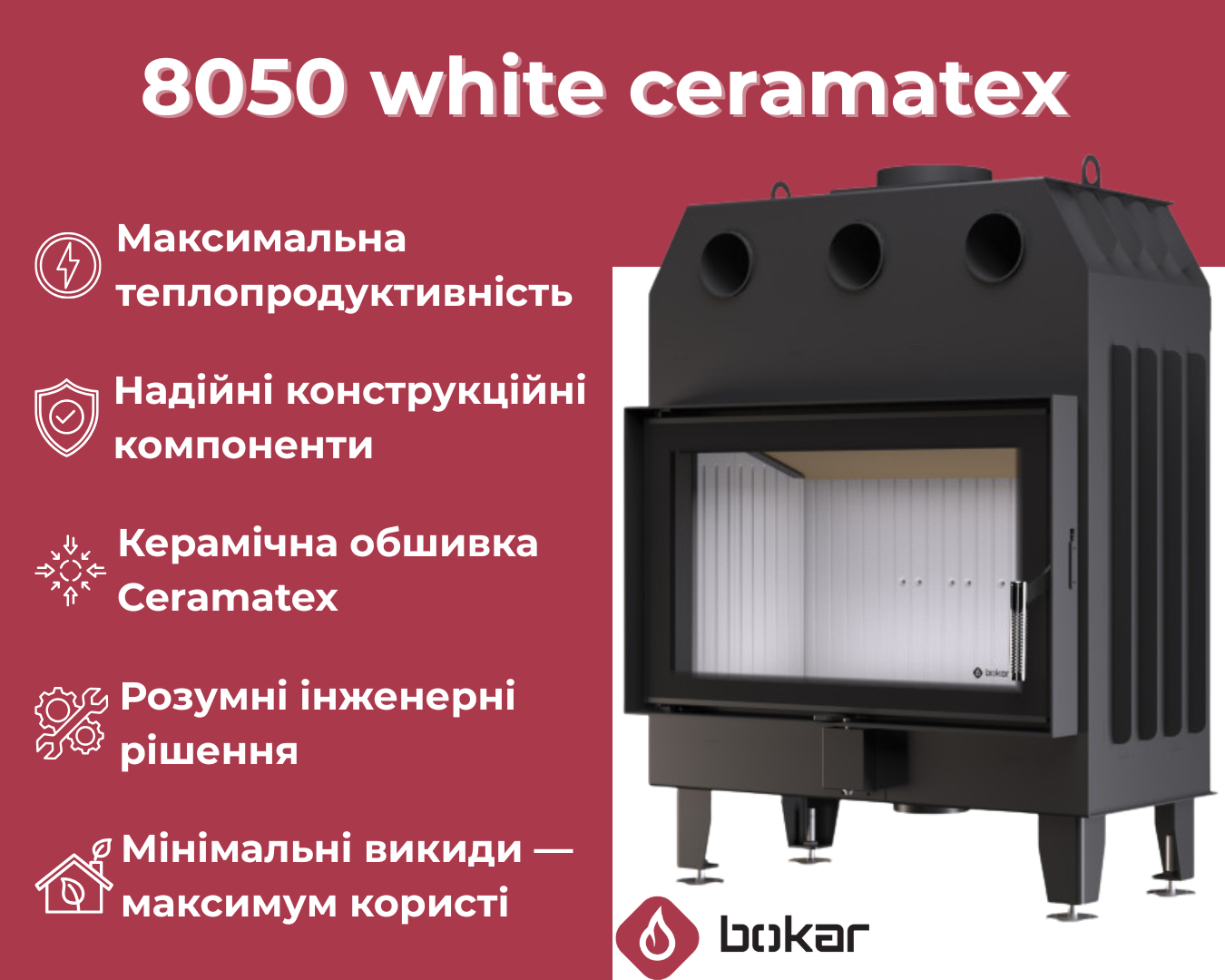 Каминная топка BOKAR 8050 16,8 кВт white ceramatex