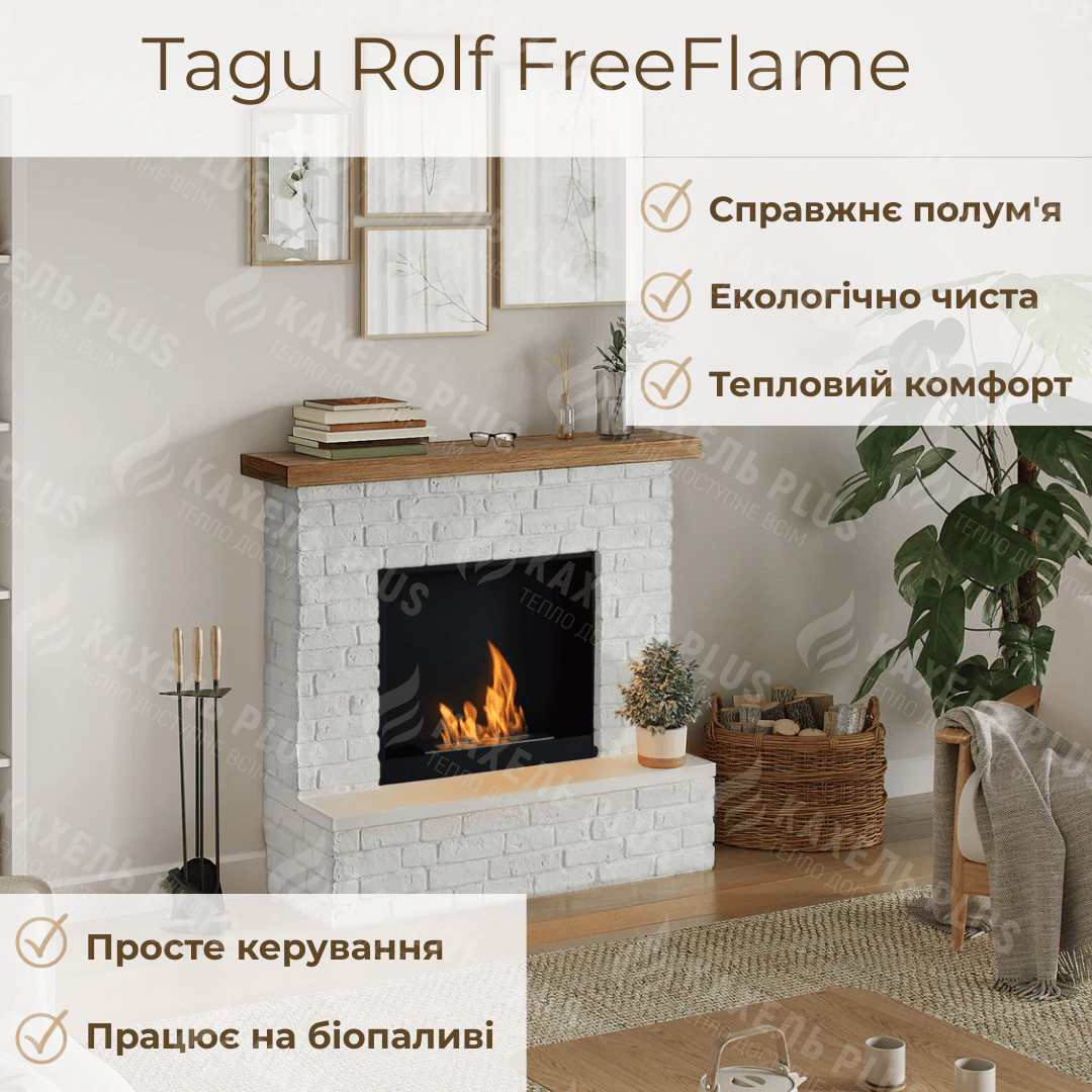 Заказывайте каминокомплект TAGU ROLF FreeFlame в KahelPlus — получайте атмосферу настоящего живого огня, природный комфорт и надежное качество для вашего дома.