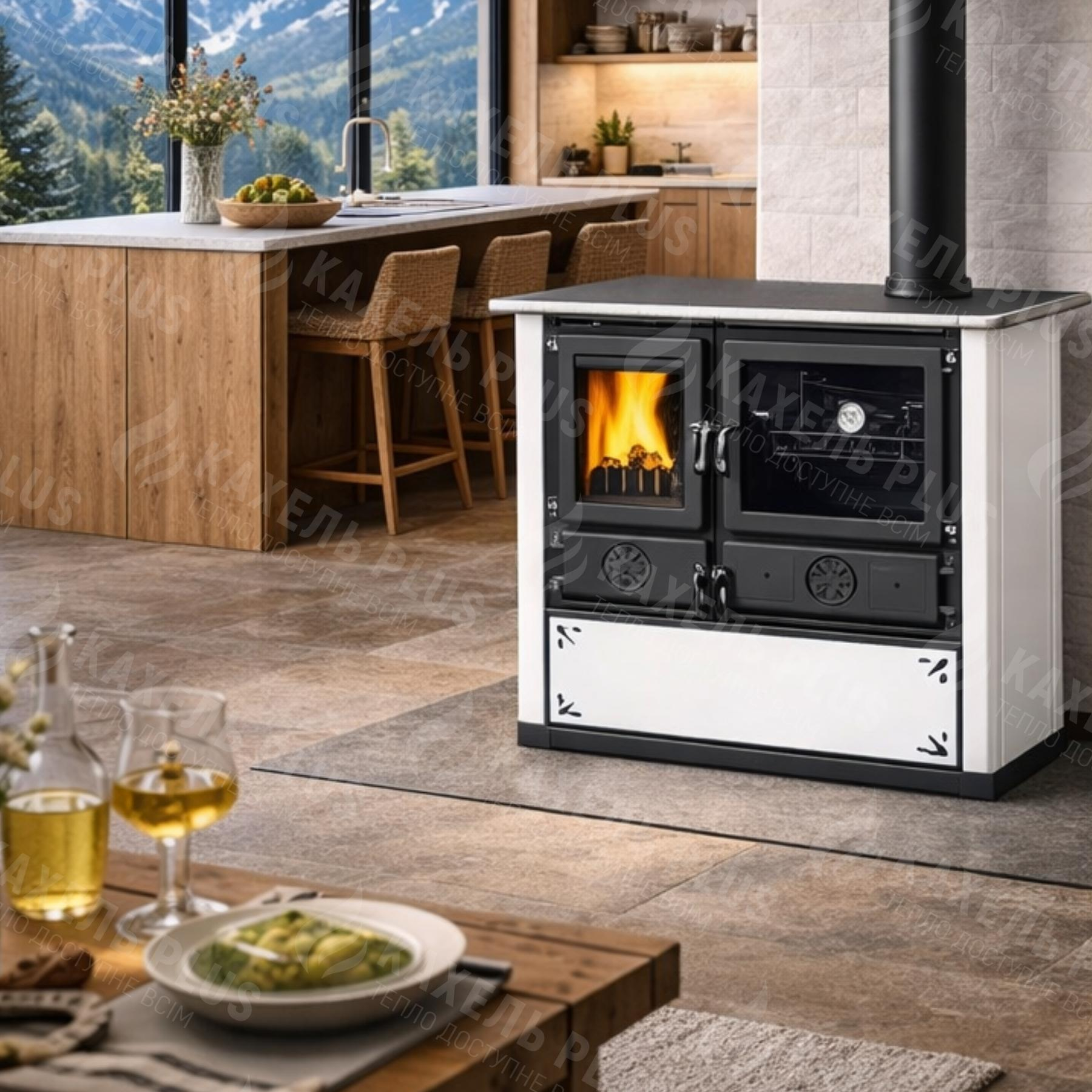 Кухонная печь на дровах La Nordica ROSA 8,8 кВт (STEEL Dotted White)