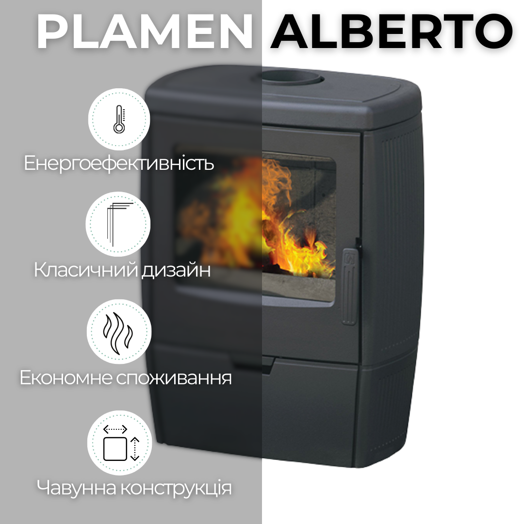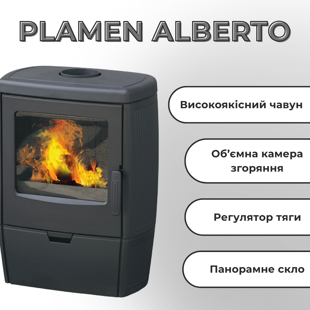 Чугунная печь PLAMEN ALBERTO на дровах 8,6 кВт