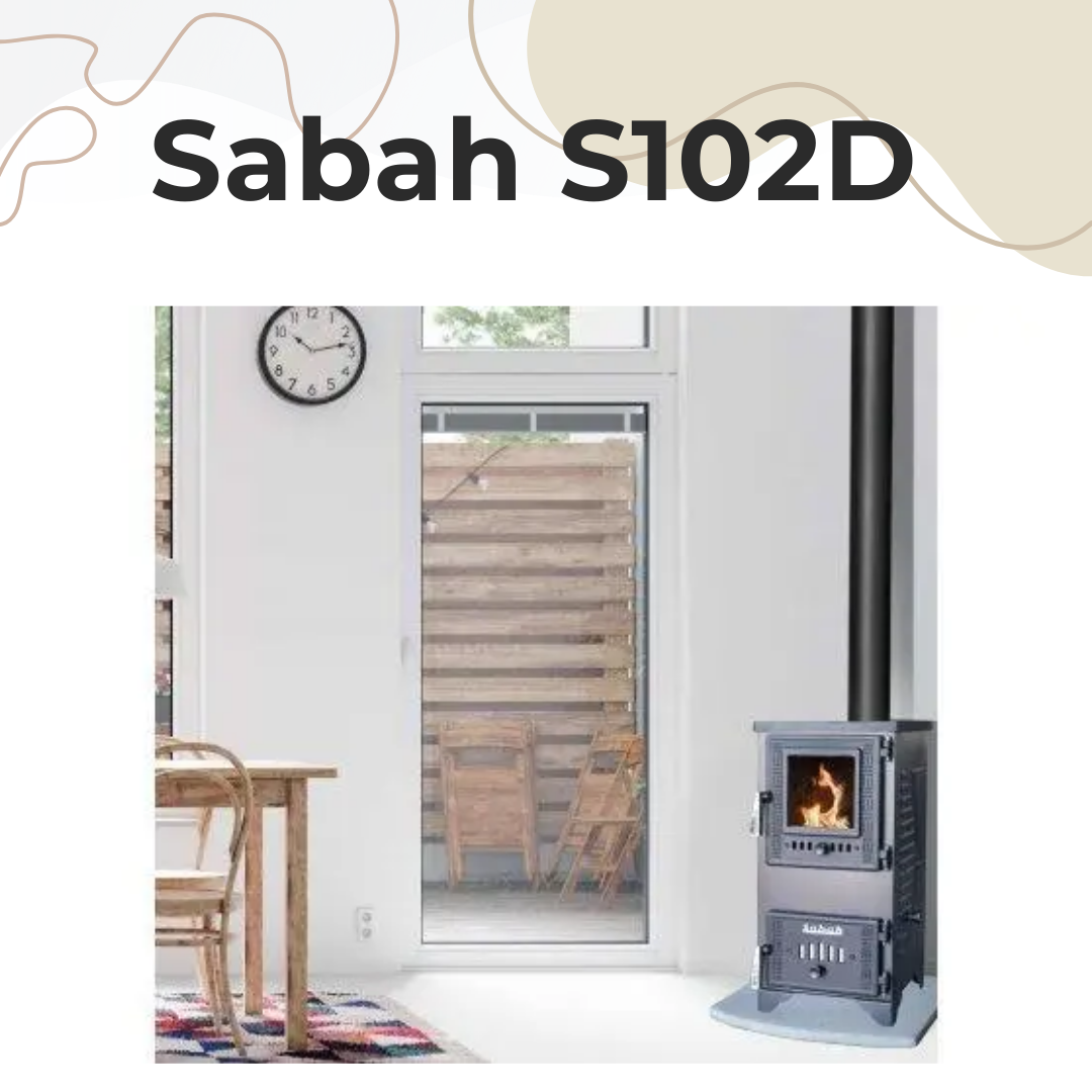 Стальная печь-камин-буржуйка Sabah S102D 7.8 кВт с чугунной топкой и варочной поверхностью