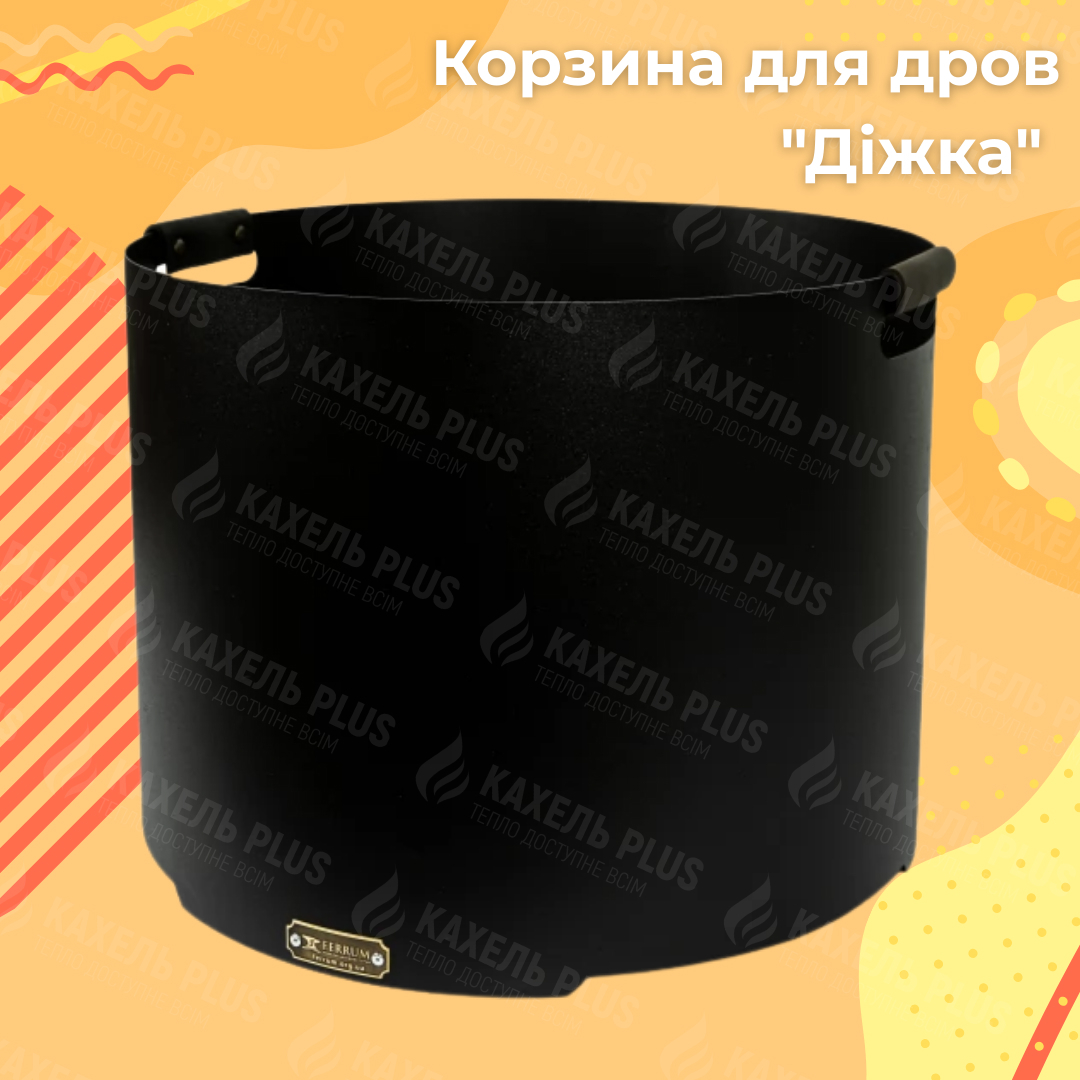 Сталева корзина для дров FERRUM "Діжка" + ручки з натуральної шкіри