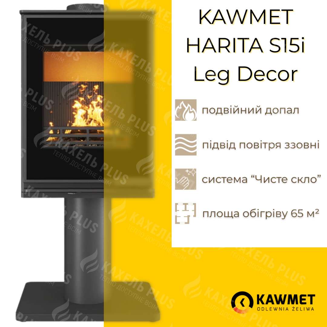Сталева піч-камін KAWMET HARITA S15i Leg Decor ECO 6,5 кВт на дровах