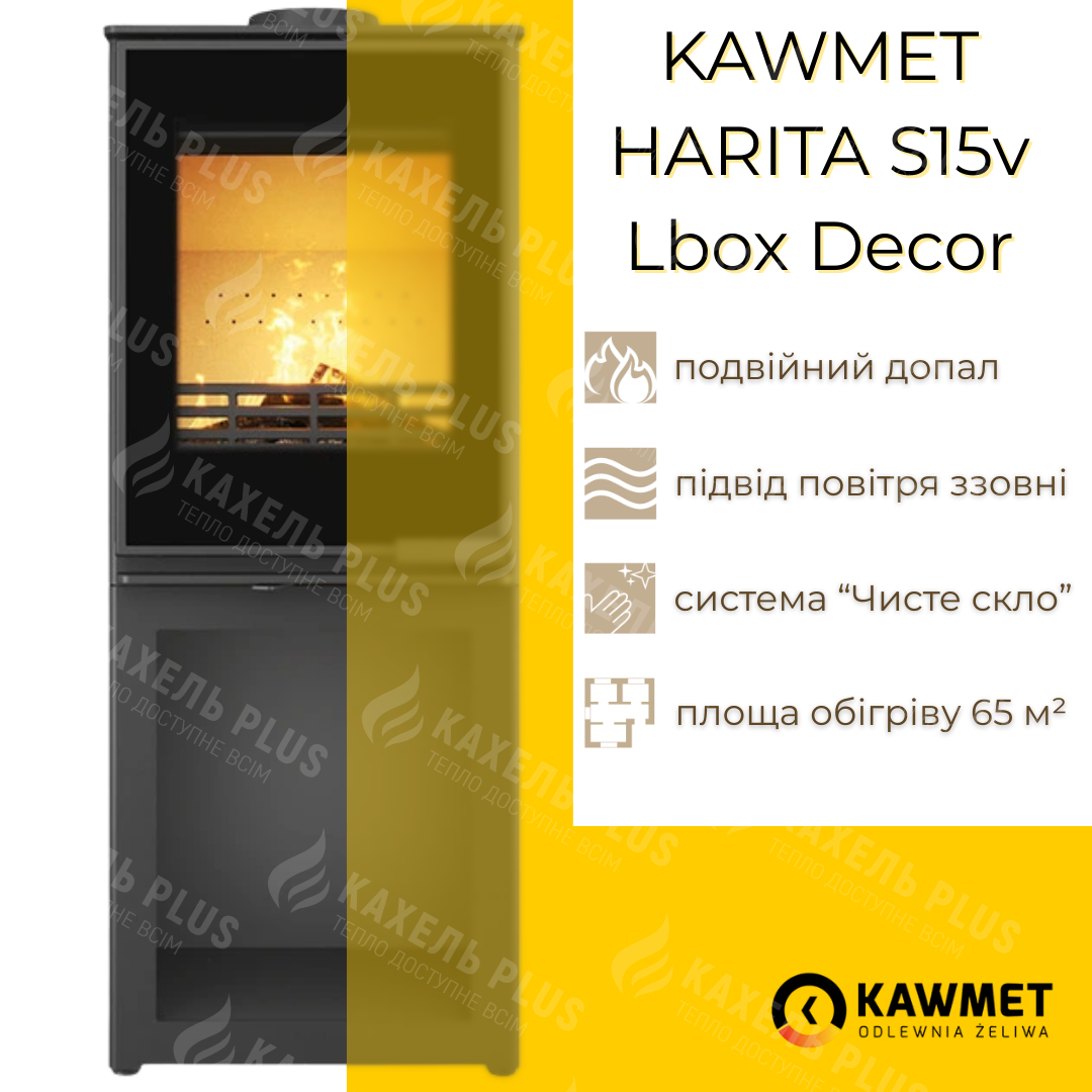 Сталева піч-камін KAWMET HARITA S15v L-Box Decor ECO 5,7 кВт на дровах