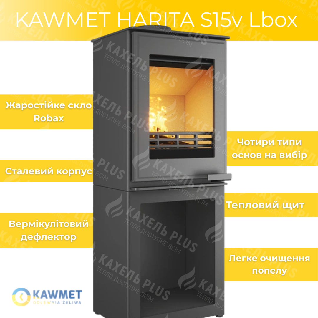Сталева піч-камін KAWMET HARITA S15v L-Box ECO 6,5 кВт на дровах