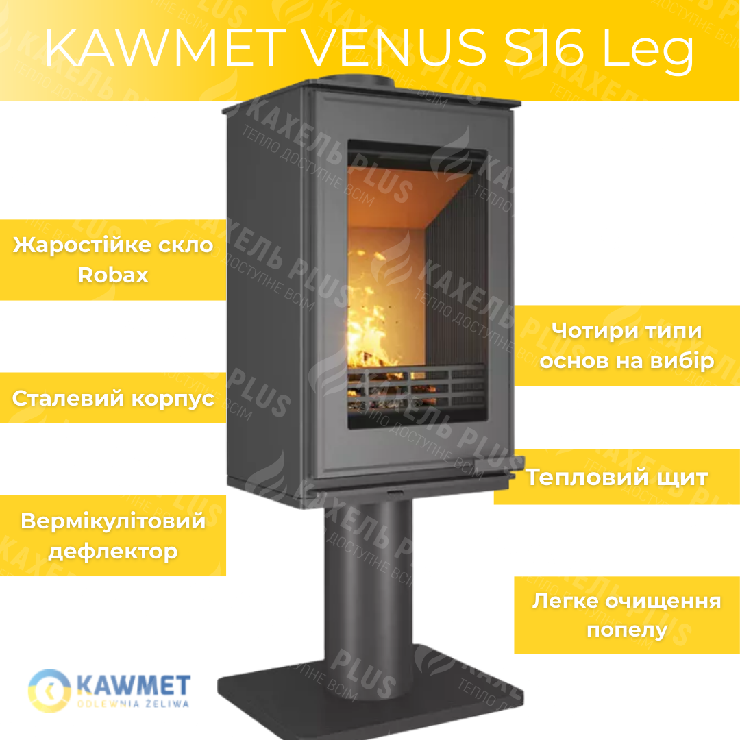 Сталева піч-камін KAWMET VENUS S16 Leg ECO 9,5 кВт на дровах