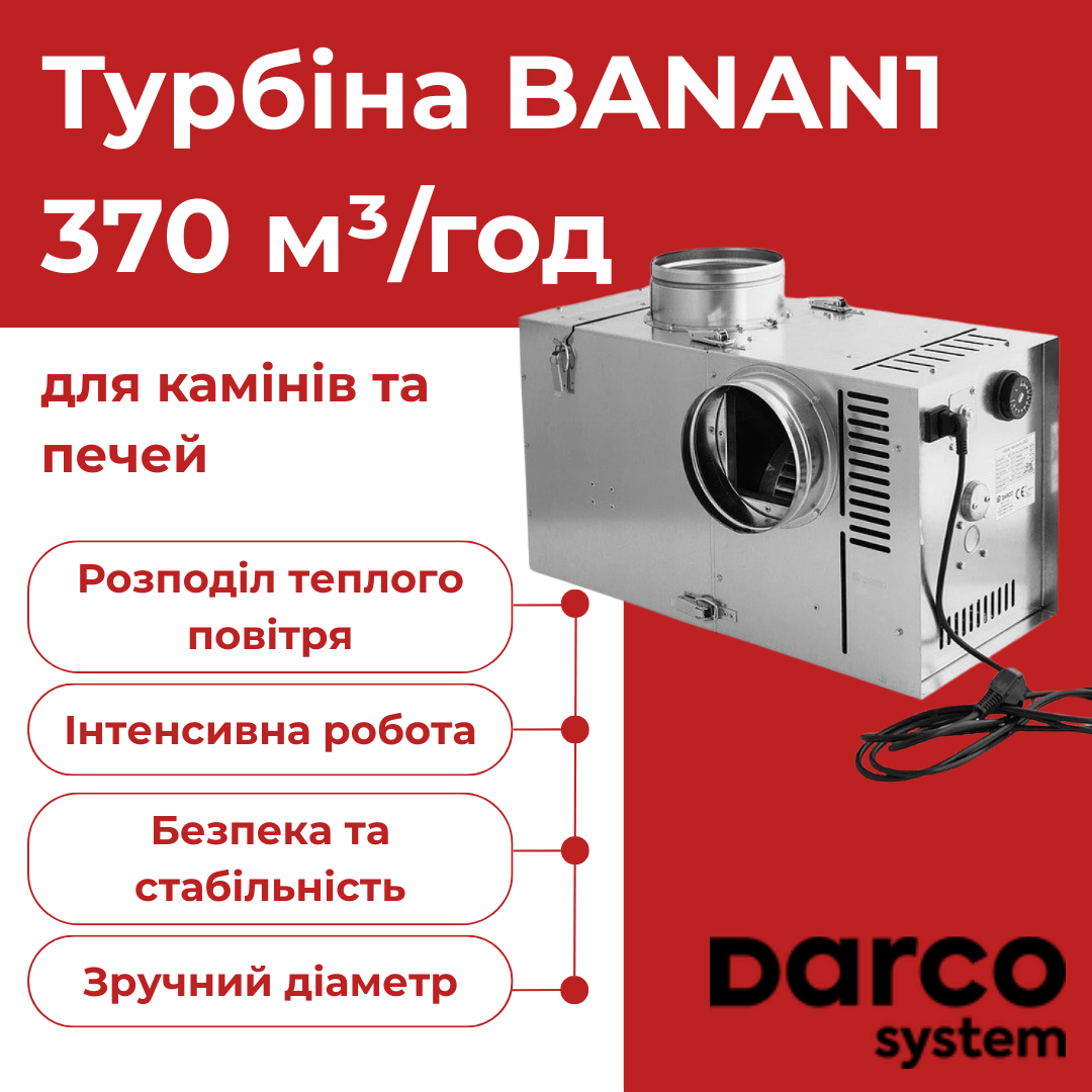 Турбіна розподілу теплого повітря DARCO BANAN1 370 м³/год для камінів та печей
